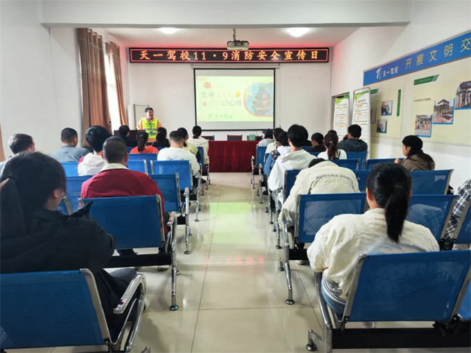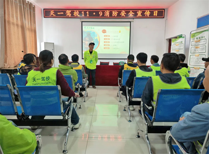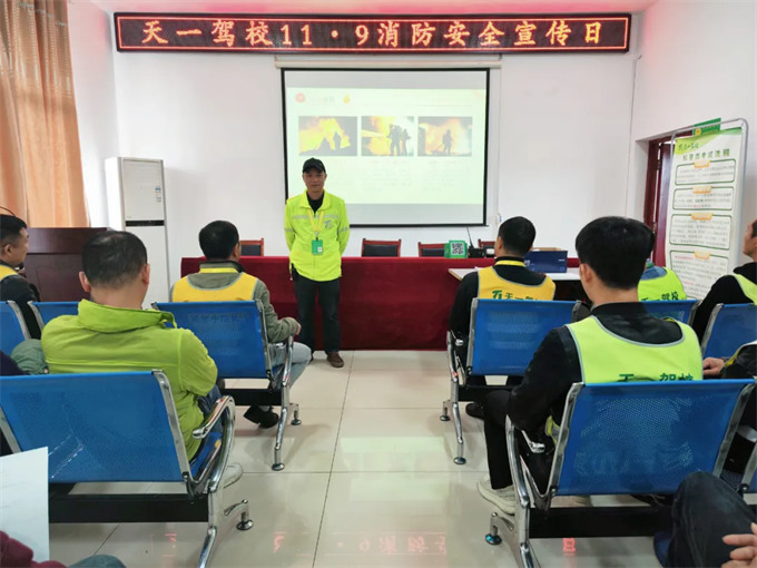 為了保障我校學(xué)員、教職員工的人身和財(cái)產(chǎn)安全,進(jìn)一步提升消防安全意識,提高對消防設(shè)施器材的認(rèn)識和使用水平,讓學(xué)員和教職員工學(xué)到更多消防基礎(chǔ)知識,特別是在應(yīng)對因車輛起火等原因引起事故的應(yīng)急處置辦法,教會大家怎樣將事故風(fēng)險(xiǎn)降到最低。11月8日天一駕校以“11·9全國消防安全日”為契機(jī),圍繞“全民消防,生命至上”主題,組織開展消防安全專題培訓(xùn)及應(yīng)急疏散演練。