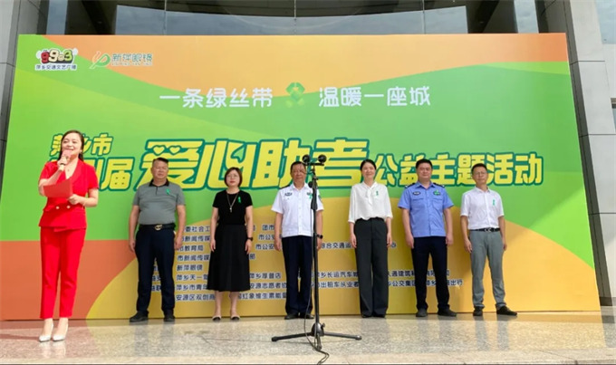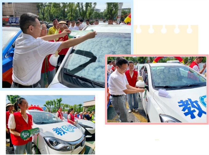 為愛心車隊(duì)現(xiàn)場貼標(biāo)系綠絲帶
