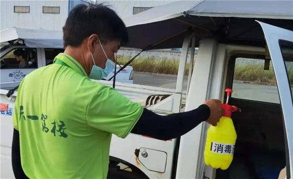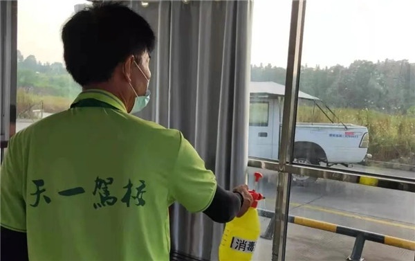 炎炎夏日防疫防控工作也絲毫不曾放松,戴好口罩勤洗手做好自身防護(hù)的同時,堅(jiān)持每日對教練車輛、休息廳做好消殺工作。