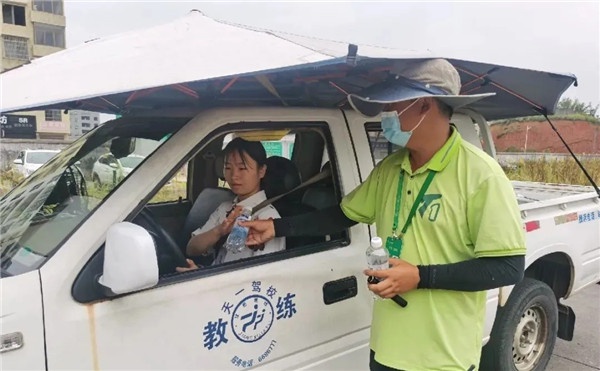 萍鄉(xiāng)FM993交通廣播攜手愛心商家為烈日下堅(jiān)守崗位的教練員們送上一份特別的清涼。